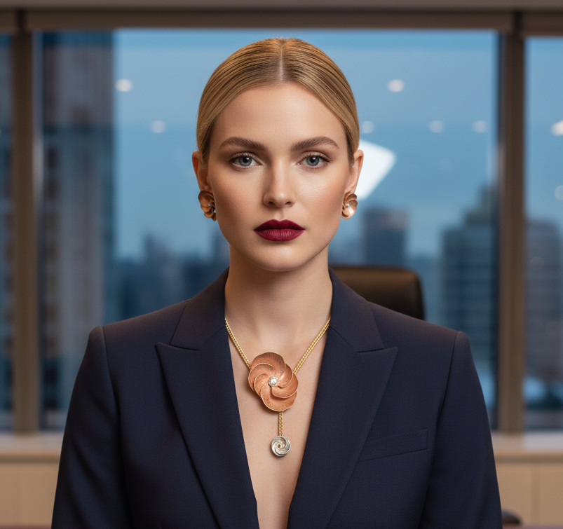 Crafted in 18k yellow gold with a polished rose gold finish, this 62.75g necklace set features an elegant blooming flower motif, symbolizing timeless beauty. The 16-inch necklace includes a 1.5-inch drop and adjustable links for a secure fit, fastened with a classic hook lock. Matching 1.3-inch earrings with screw-back closures complete the look—perfect for those who appreciate floral-inspired sophistication.